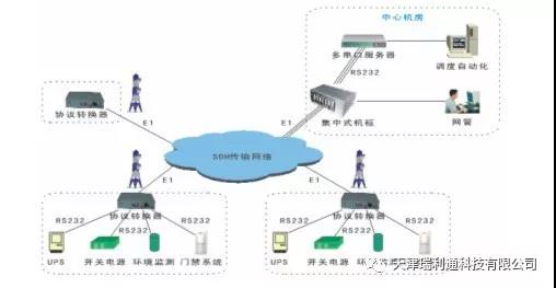 本案例中E1通道組建基站信息監(jiān)控網(wǎng)絡(luò)。利用我公司多串口轉(zhuǎn)換器,可在1條E1中傳輸多種(1~16路)串口監(jiān)控?cái)?shù)據(jù),比如開(kāi)關(guān)電源、UPS、溫度/濕度監(jiān)測(cè)、煙感、門(mén)禁等,有效利用E1時(shí)隙的同時(shí)也預(yù)留一定的擴(kuò)容空間。中心機(jī)房通過(guò)配置集中插卡式機(jī)框,實(shí)現(xiàn)對(duì)本端及遠(yuǎn)端設(shè)備的統(tǒng)一網(wǎng)管,也有利于接入點(diǎn)的擴(kuò)容。網(wǎng)管接口采用SNMP。