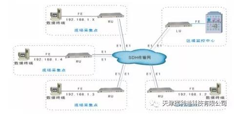本案例中,采用數(shù)字收斂系列設(shè)備實(shí)現(xiàn)將各節(jié)點(diǎn)的以太網(wǎng)/數(shù)據(jù)通過E1環(huán)網(wǎng)方式匯聚在中心機(jī)房。在各節(jié)點(diǎn)配置RU設(shè)備,在中心機(jī)房配置LU設(shè)備。環(huán)形組網(wǎng)構(gòu)成雙環(huán):包括中心端在內(nèi)的相鄰節(jié)點(diǎn)分配一路E1,各節(jié)點(diǎn)串接起來呈環(huán)狀,因此可提供雙環(huán)保護(hù)機(jī)制,支持故障時(shí)的保護(hù)倒換。可支持SNMP網(wǎng)管,實(shí)現(xiàn)對(duì)本端及各節(jié)點(diǎn)端設(shè)備的監(jiān)控設(shè)置、故障及告警管理等。